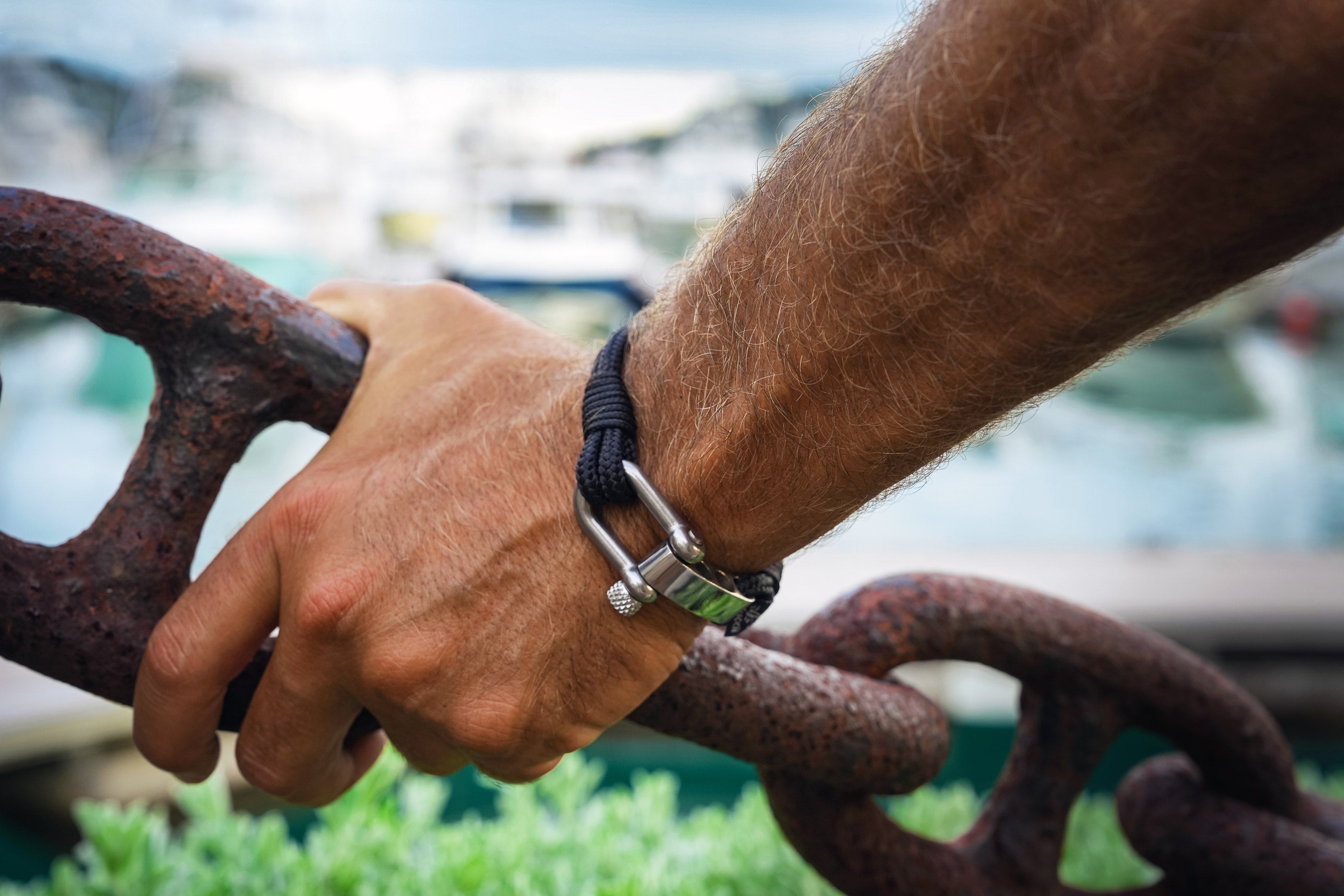 Handmade from authentic European Nautical Rope and Marine-grade stainless steel shackles.